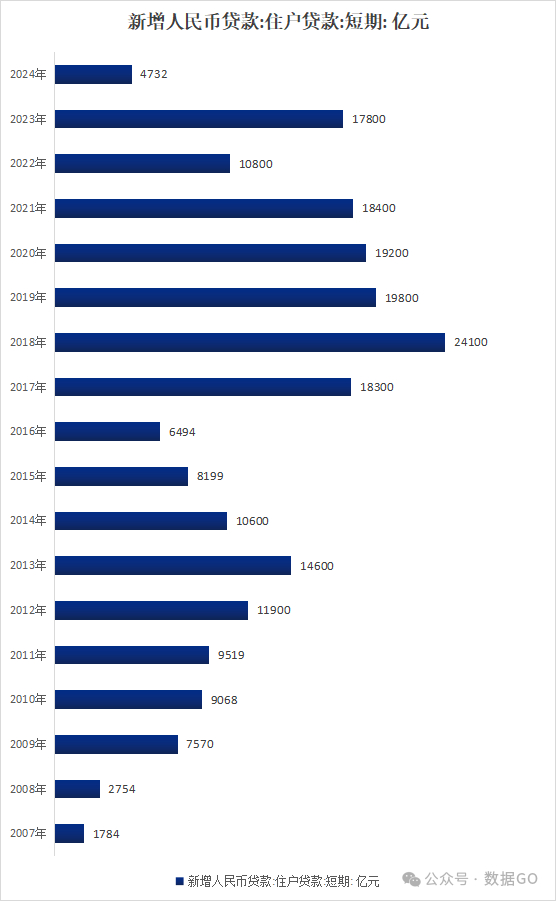 其中:2024年,居民新增短期贷款4732亿元,大幅低于2023年的1.78万亿元,是2008年以来最低值。