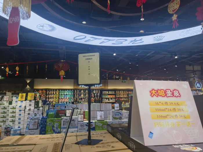 在超市看到“大昭圣泉”正开展“买一送一”活动,非常划算。
