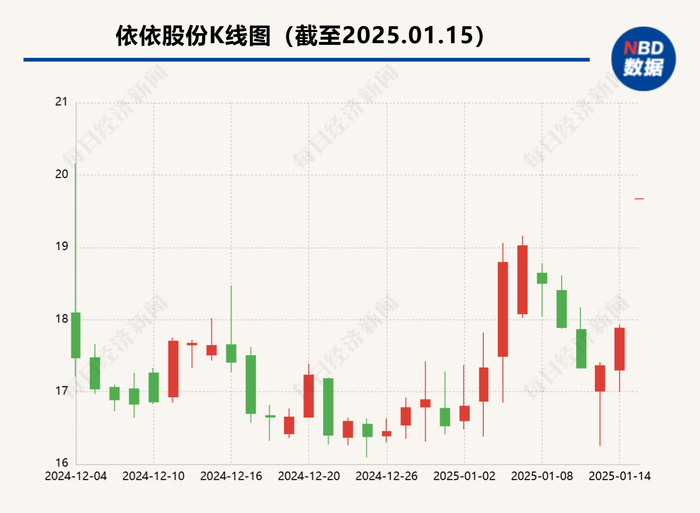 该人士所说的同行,是在1月14日晚间发布2024年业绩预告的依依股份。数据显示,2024年度,公司预计实现归母净利润1.98亿元~2.25亿元,同比增长91.76%~117.91%。