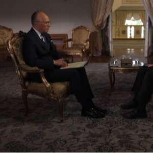 伊朗总统佩泽希齐扬在首都德黑兰接受NBC新闻记者莱斯特·霍尔特独家采访。图为采访视频截图