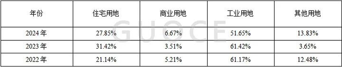 表2:2021年、2022年、2023年各类型土地成交面积占比情况