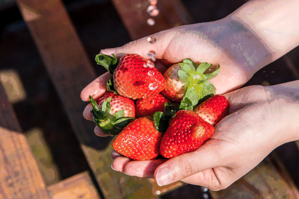 「看形状」采摘时,尽量选择中等大小的草莓,表面光滑无损,最好是一个心形。