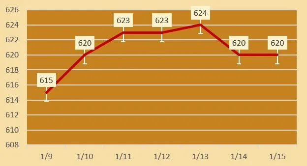 2025年1月15日,各品牌金店黄金零售价格稳定于高价。据今日金价行情统计今日黄金首饰价格每克在649元至822元区间(工费另计),投资金条价格每克645元左右,白银价格7.1元/克。
