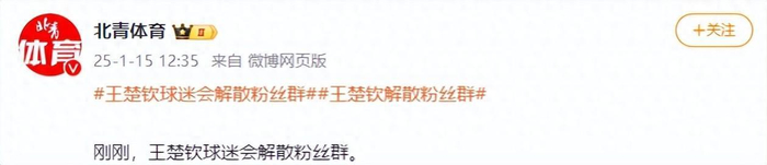 1月15日,据北青体育消息,王楚钦球迷会解散粉丝群。