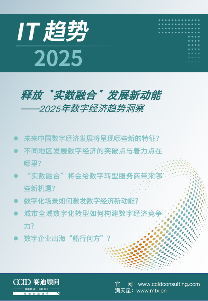 随着全球数字化浪潮的持续推进,数字经济已经成为经济发展中创新最活跃、增长速度最快、影响最广泛的领域,对培育发展新质生产力、提升产业链供应链韧性具有强大支撑作用。站在2025年的起点,展望未来,赛迪顾问认为2025年数字经济发展将呈现如下十大趋势: