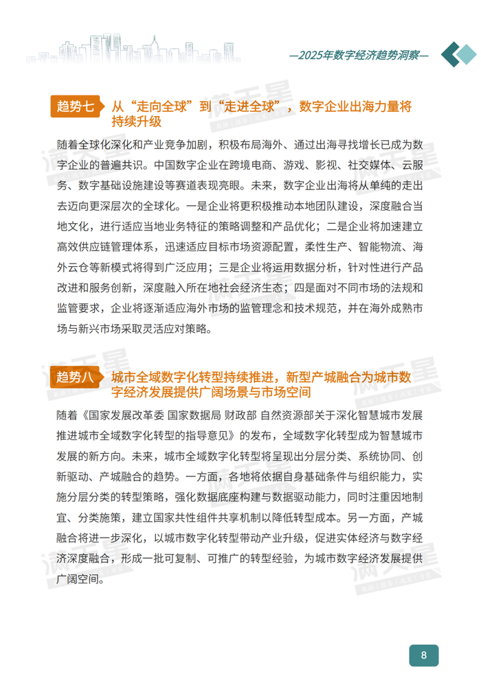 城市全域数字化转型将呈现出分层分类、系统协同、创新驱动、产城融合的趋势。各地将依据自身基础条件,实施分层分类的转型策略,建立共性组件共享机制,降低转型成本。同时,产城融合将进一步深化,以城市数字化转型带动产业升级,促进实体经济与数字经济深度融合,形成可复制、可推广的转型经验。