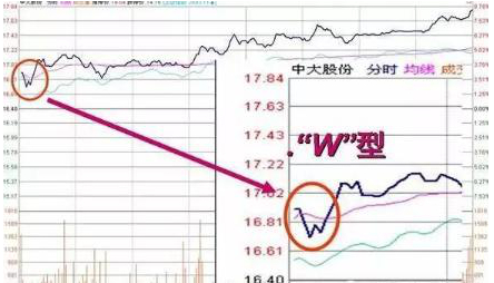 B.“W”型走势:与“N”型走势类似——只是多了一次探底,在分时形态上形成一个“W”型走势。