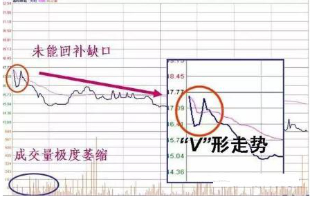 即低开后股价继续走低,或快速上冲到缺口附近再次回落,没能回补缺口,形成一个“V”形或倒“V”形走势,成交量呈现极度萎缩或极度放大之势,内盘是外盘的一倍以上,此种开盘全天看跌。
