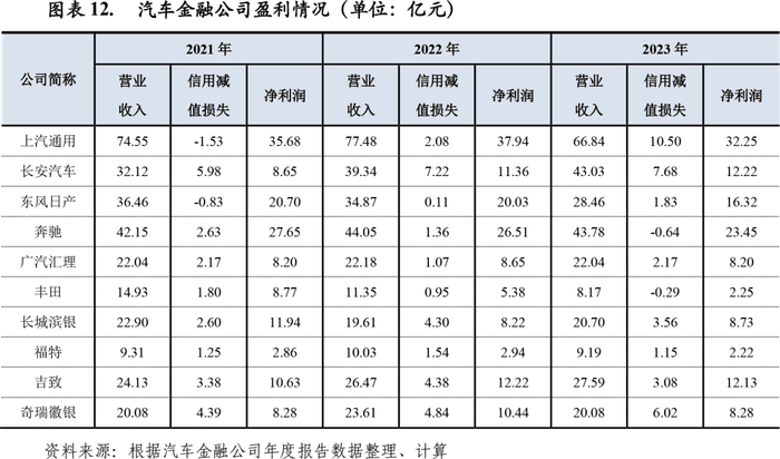 从盈利情况来看,汽车金融公司与服务品牌销售量关联度高,大部分汽车金融公司营收维持稳定增长,净利润波动主要受当年拨备计提影响。