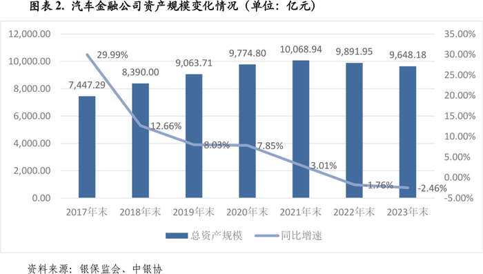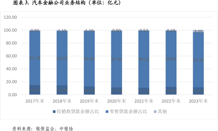 (二)在传统燃油汽车市场景气度下降、产销量增长疲软的背景下,受整车厂汽车产量下滑、与银行业金融机构同业竞争压力加大等因素的影响,2023年以来汽车金融公司资产规模增速持续收窄。汽车金融公司业务结构以零售贷款为主且占比持续增长,经销商贷款占比逐年下降。近年来,汽车金融公司不良贷款规模持续增长,不良率水平有所波动。得益于相对灵活的贷款核销政策,汽车金融公司整体资产质量维持较好水平。汽车金融行业融资仍以发行资产支持证券和金融债券以及金融机构借款为主。汽车金融公司资本充足率基本能够满足业务发展需要,短期内的资本补充压力较小。