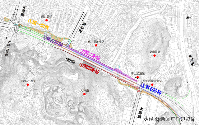 路径二:往城东方向利用坪山隧道-安吉路分流。
