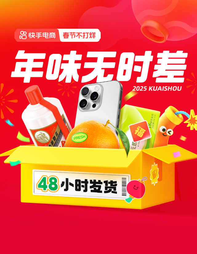 春节期间,用户的消费需求同样高涨。快手电商以“年味无时差 48小时极速发”为主题,打造“春节不打烊”电商会场,在策划重磅带货直播、“下单返黄金”创新玩法的同时,为用户提供48小时发货的物流保障,提升春节期间的购物体验,做到“可看、可买、可收货”。