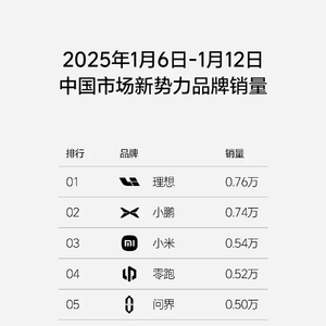 2025年的第一个完整周,理想重返新势力品牌销量榜首,找回了2024年的节奏。