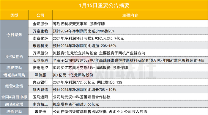 金证股份公告,公司正在筹划重大事项,该事项可能导致公司控制权变更。公司股票自2025年1月16日(星期四)开市起停牌,预计停牌时间不超过2个交易日。