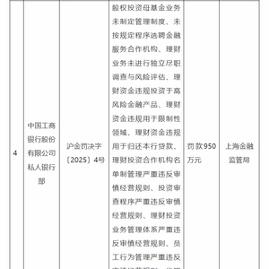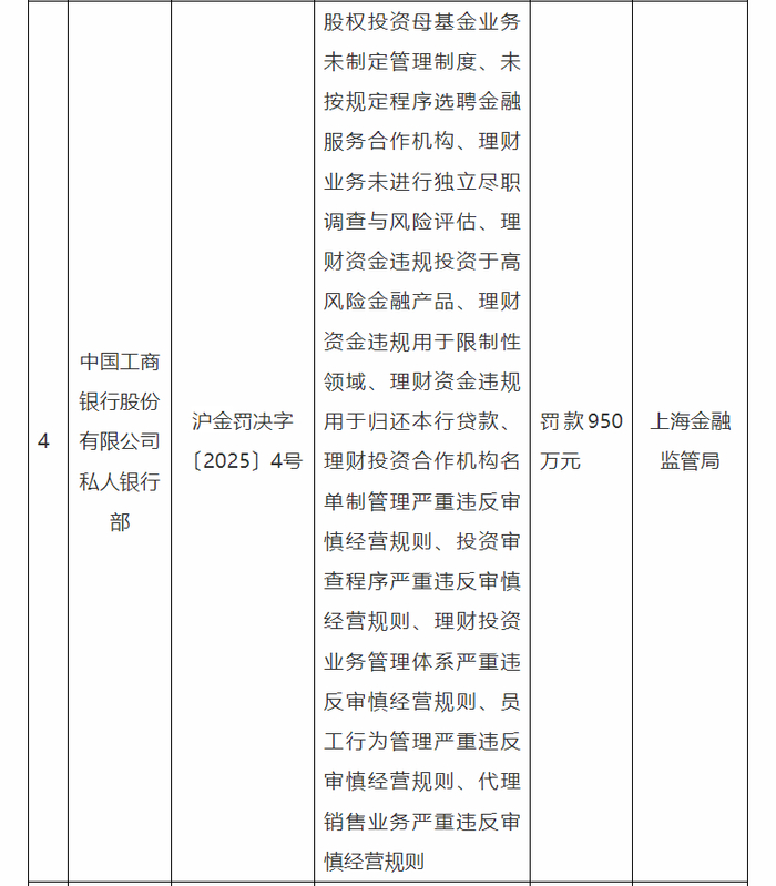 违规投资高风险产品!工商银行私人银行部被罚950万