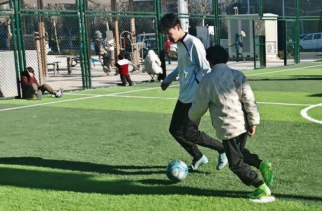 张润泽告诉记者,他家住在金水区渠东路附近,前几天放寒假回家,发现家门口多了一个笼式足球场和多功能运动场。天气晴好的时候,他就会约着朋友一起来这踢球锻炼。