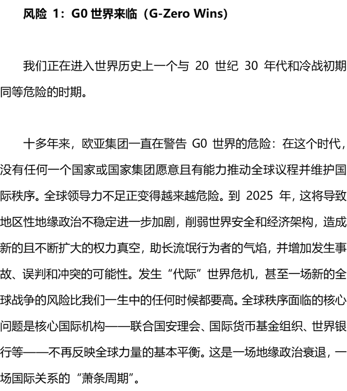 欧亚集团“2025全球十大风险”报告:世界已进入“丛林法则”