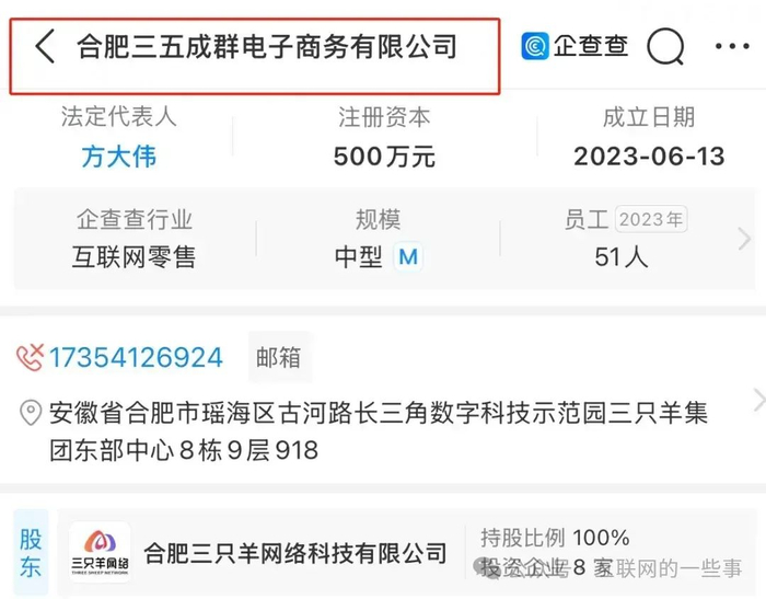 经过企查查的搜索,会发现该公司的实际控股公司就是合肥三只羊网络科技有限公司,并且是100%控股。至此,三只羊复播的消息得以确认。