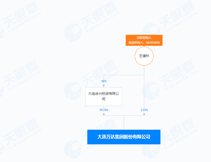 股权穿透后,万达集团实际控制人为王健林。