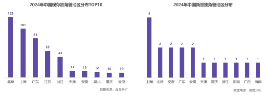 地区分布:近八成现存独角兽来自北京、上海、广东、江苏和浙江5地