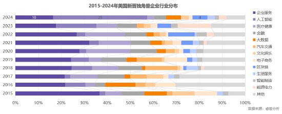 行业分布:美国新晋独角兽人工智能行业占比快速攀升
