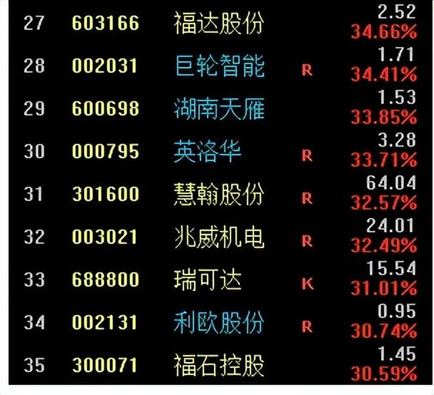 利欧股份以30.74%的涨幅名列第34名,跑赢了5000个股票。