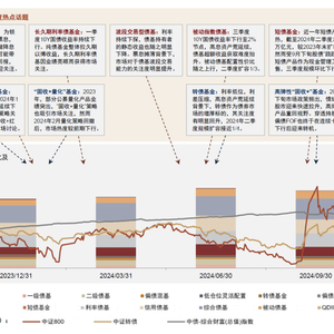 我们回顾2024年固收类基金热点话题,一季度,利率下行背景下,市场关注海外债券高票息与降息后资本利得机会,QDII债基热度抬升,单季度规模扩容60%,截至3Q24相较2023年末扩容1倍以上;久期策略受市场追捧,长久期利率债基业绩亮眼;延续2023年尾声趋势,股市震荡下“固收+红利低波”策略仍受关注,“固收+量化”策略在2月回撤后明显降温。