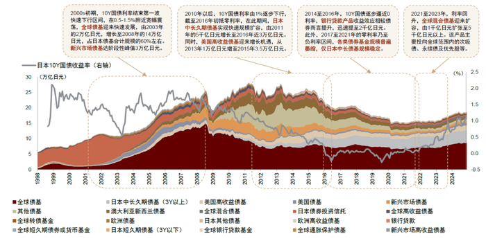 图表10:日本低利率区间细分品类债券基金的发展变迁