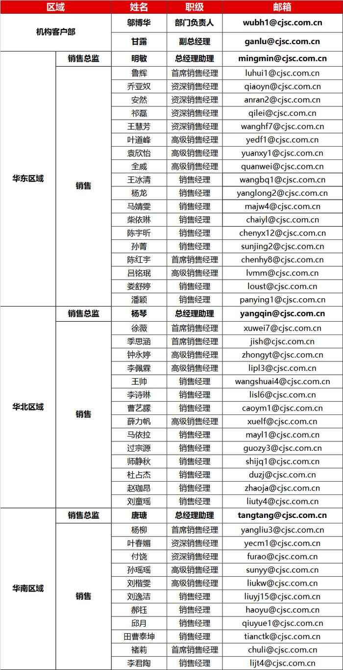 机构客户部通讯录