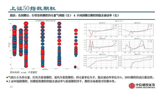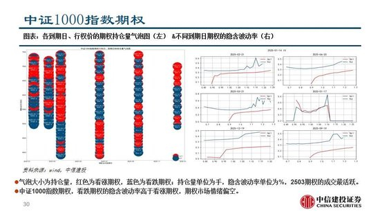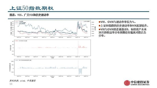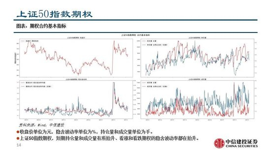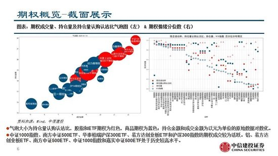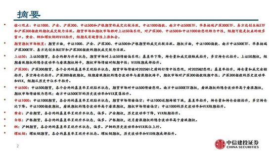 中证1000、沪金、沪深300、中证500和沪银期货的成交比较活跃,中证1000指数、南方中证500ETF、华泰柏瑞沪深300ETF、易方达创业板ETF和沪深300指数的期权成交较为活跃。期货市场和期权市场都对上证50偏乐观,对沪深300、中证500和中证1000由悲观转为中性,短期可能是权益的做多窗口。黄金、铜和螺纹钢的VIX抬升,短期或有趋势性上涨机会。