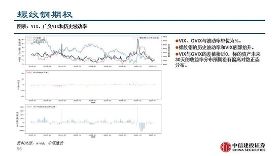 螺纹钢:螺纹钢期货,各合约基差率呈现升水状态。螺纹钢期权,历史波动率和VIX短期底部抬升。