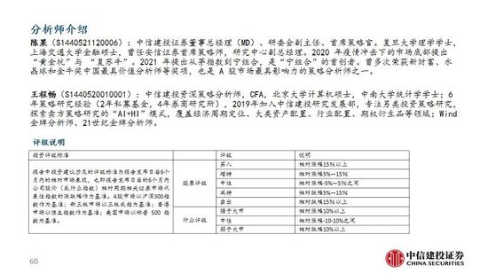 陈果:中信建投证券董事总经理(MD)、研委会副主任、首席策略官。复旦大学理学学士,上海交通大学金融硕士,曾任安信证券首席策略师,研究中心副总经理。2021 年提出从茅指数到宁组合,是“宁组合”的首创者。曾多次荣获新财富、水晶球和金牛奖中国最具价值分析师等奖项,也是 A 股市场最具影响力的策略分析师之一。
