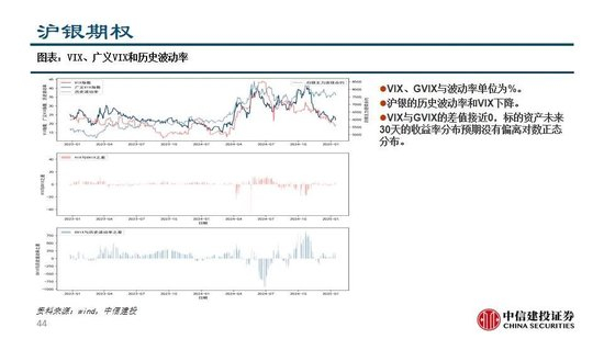 黄金:沪金期货,各合约的基差率呈现升水状态,偏多。沪金期权,历史波动率下降,VIX短期抬升。