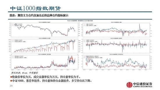 沪深300:沪深300期货,各个合约的基差率呈现贴水状态,期货市场情绪对2025Q1之前的行情中性悲观,对2025Q2悲观;基差率抬升,持仓量和成交金额抬升,多空持仓比抬升。沪深300指数期权,短期看跌期权的隐含波动率与看涨期权持平,期权市场对沪深300指数短期中性;沪深300指数的历史波动率和VIX,短期从历史中位水平抬升。