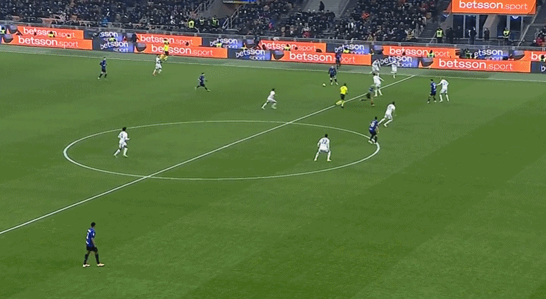 上半场补时阶段,迪马尔科左路横传,劳塔罗推射破门,国米2-1。