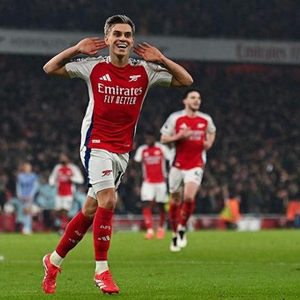 第40分钟,加布里埃尔头球击中索兰克变线破门,阿森纳1-1扳平。