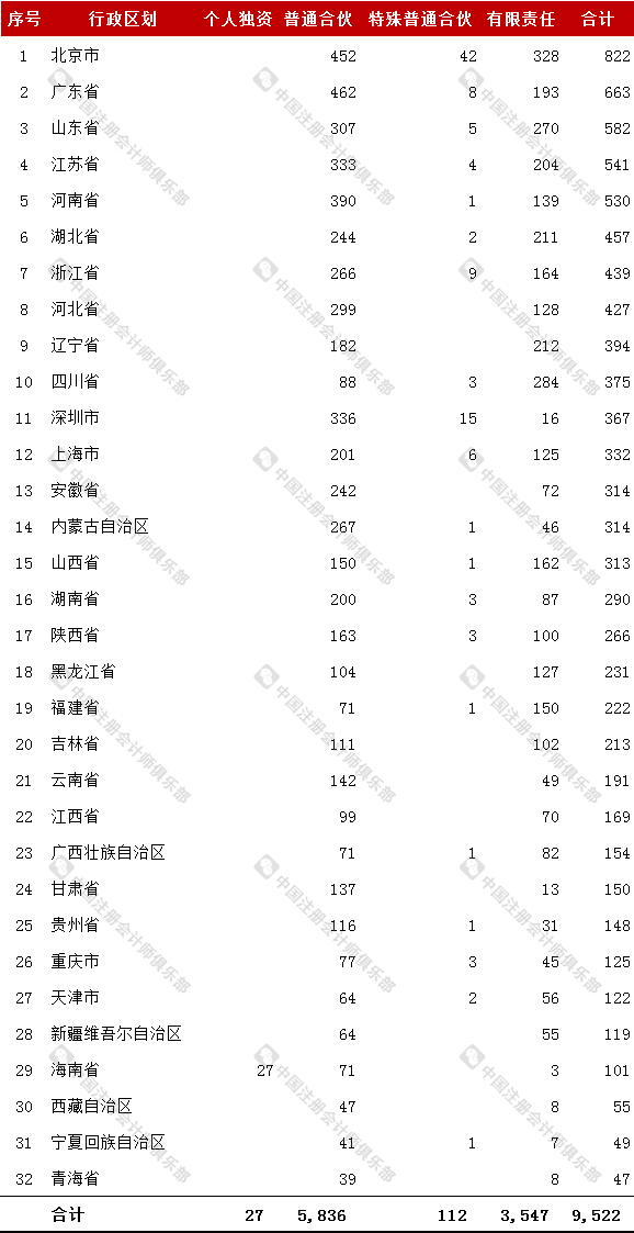 截至2024年12月31日,全国共有9,522家会计师事务所。