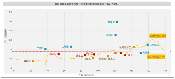 (2024年,武汉市新建商品住宅市场分区存量与出清周期表现。戴德梁行/图)