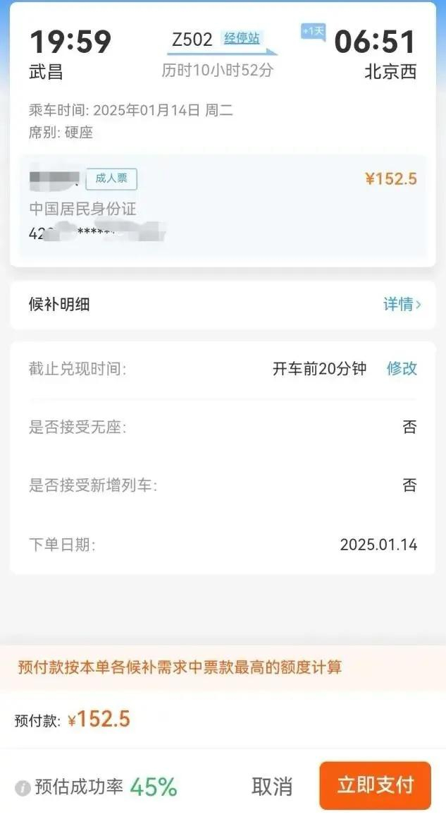 1月14日,有网友发文称:“一直以为候补是别人退票才轮到我,结果刷到科普视频介绍称,候补人少的时候是等别人退票,候补人多会加车厢,人更多直接加车次。”
