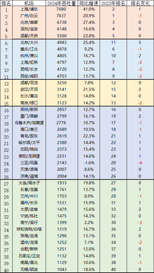 那么现在就和翼哥来看看2025年第二周,我国最繁忙的40座千万级机场旅客吞吐量排名情况,数据来自于CADAS,为初步统计。