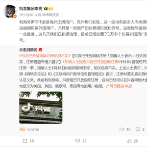 近日,“抖音已开放国际注册”的消息引热议。对此,有知情人士16日表示,相关信息不实。
