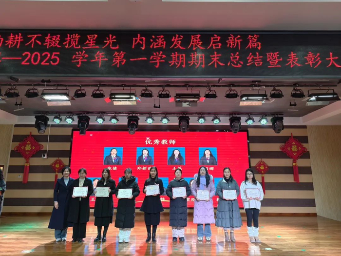 大会伊始,张小平副校长宣读了优秀教师、优秀班主任、优秀两级组长、特别贡献奖、优秀教学质量奖名单。获奖教师们面带自豪的微笑,迈着自信的步伐走上领奖台,他们手中的奖状熠熠生辉,这不仅是个人辛勤耕耘的荣耀象征,更是对其教育奉献的高度赞誉。台下掌声如潮,这掌声饱含着对获奖者的钦佩,也激励着全体教师在教育路上奋勇争先,向榜样的高度不断攀登。