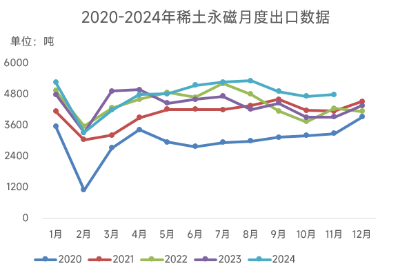 2024年12月中国稀土出口量小幅下降,但全年表现依旧强劲