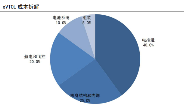 因此,以电机为核心的电推系统,在eVTOL中的成本占比最高,可达到40%。
