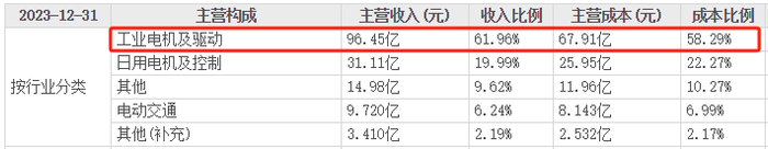 从产品结构来看,工业电机仍是公司营收基本盘,2023年收入占比占到62%。