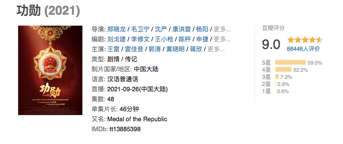以2021年在豆瓣拿下9.1高分、现在仍保持9分的《功勋》为例,其上线之后播放热度和收视率均持续走高,跳出了宏大叙事的模板化套路,在尊重基本史实的基础上尽量做到真实落地、细节合理,鲜活立体的角色和真情实感的表达跨越时空赢得了新时代年轻人的共情。