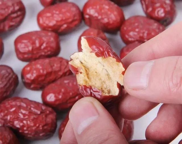 怎么买红枣:正常红枣晒干后表面有褶皱和自然斑点。而硫磺红枣外表光滑、颜色鲜亮,没有斑点,掰开后枣肉发白,且硫磺枣,闻起来有一股怪味,掰开一小块放入口中味道苦涩,千万不要购买。