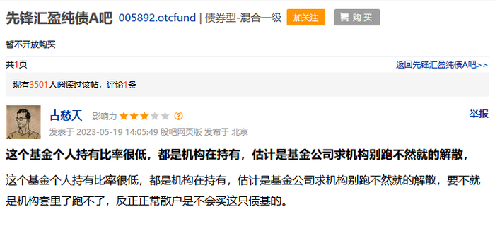 值得注意的是,这两只基金的主要持有人很可能就是两家机构。据四季报,截至四季度末,博盈、汇盈两只基金规模分别为12.76亿元、13.6亿元,两家机构合计持有比例均超99%,且两只基金自2021年以来份额变动幅度都小到几乎可以忽略不计,这也让投资者社区里产生了“机构被套”等诸多猜测。目前,两只基金的状态都为暂停申购、开放赎回。