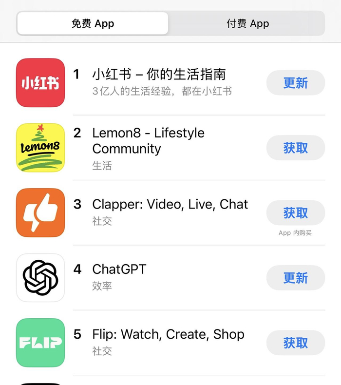 突如其来的流量出乎了所有人预料,这个连英文名字都没有的App“小红书”在美国苹果应用商店排行榜上的名次不断提升,连续几日霸占免费APP榜首,超越Meta推出的类推特产品“Threads”。