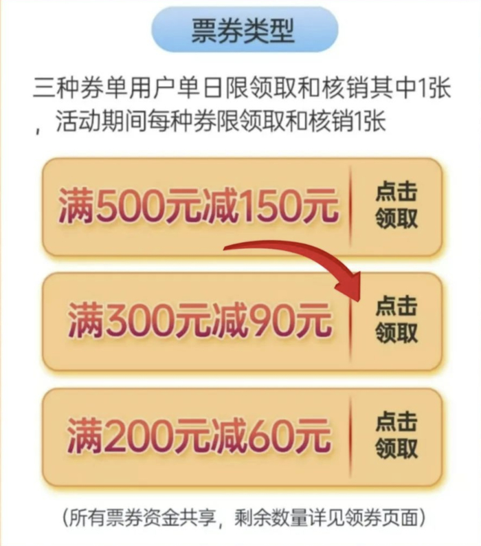 本次活动发券时间从1月16日持续至2月12日,每日早上10时准时开启抢券通道。消费券分为满5000元减250元、满10000元减500元、满20000元减1000元、满30000元减1500元共四档,累计480万元。